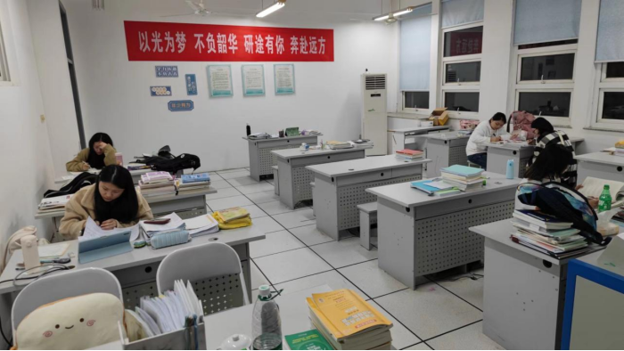 通过参观自习室,我们看到了PA视讯官方网站为考研学子准备的加油横幅,红色的幕布鼓励着每一位奋斗的学子。老师和员工们精心布置了教室,在黑板上创作考研主题板报,设置“考研加油站”。公司还给考生们提供了茶水、咖啡等,教室安静温馨,学习氛围浓郁;考研就业部的同学也会每周两次来打扫教室,给学长学姐们一个干净舒适的学习环境;专业老师们也经常会去考研自习室看看员工,随时与员工们交流。自习室24小时开放,最多可以容纳60名考生同时复习,方便考生自行调配时间。