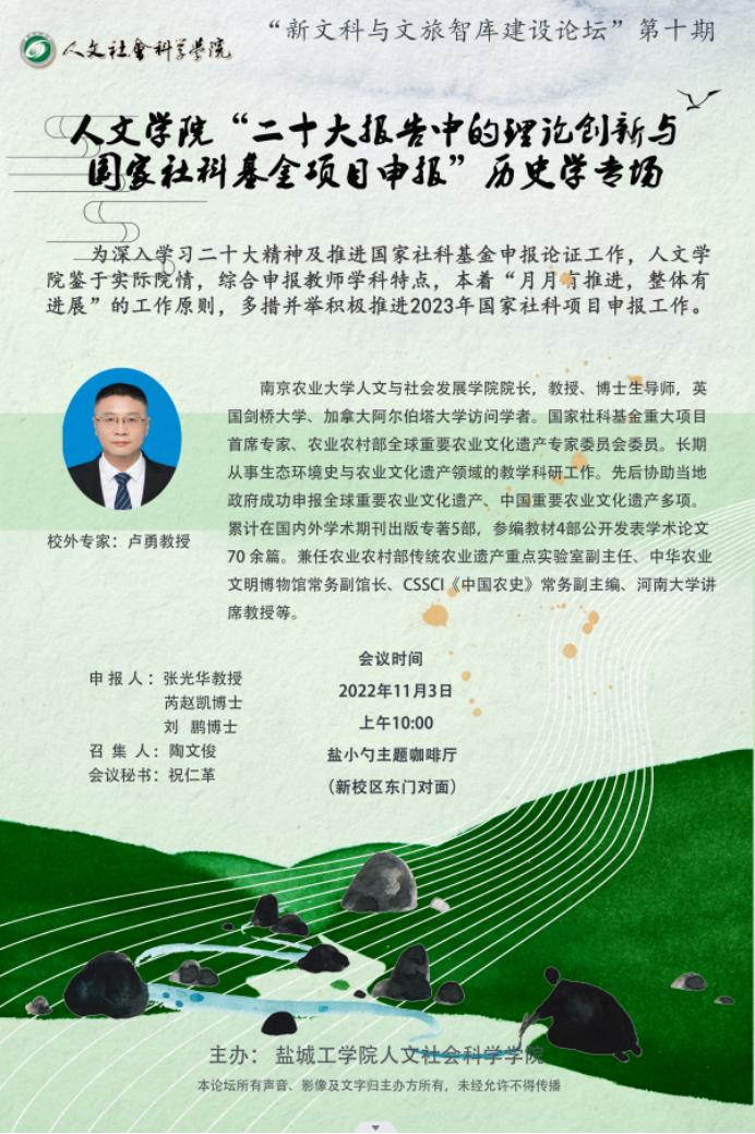 为深入学习二十大精神及推进国家社科基金申报论证工作,11月3日上午,公司举办“二十大报告中的理论创新与国家社科基金项目申报”历史学专场研讨活动。会议由陶文俊副经理主持,周晓燕经理、外国语公司副经理叶磊、社科处副处长焦微玲及社科处相关人员、PA视讯官方网站部分教师参加了研讨。