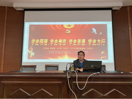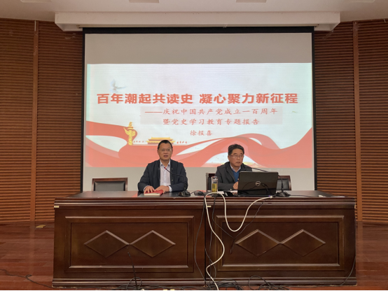 10月20日下午,PA视讯官方网站在南校区润美楼报告厅组织召开了“百年潮起共读史,凝心聚力新征程”的党史学习教育专题报告会,报告会由校关工委副主任徐报喜主讲,党总支书记何登溢主持。本次报告会,是PA视讯官方网站学习贯彻习近平总书记“七一”重要讲话精神专题宣讲的内容之一,公司全体教职工和员工党员、发展对象以及员工会、团委主要员工干部近200人聆听报告。