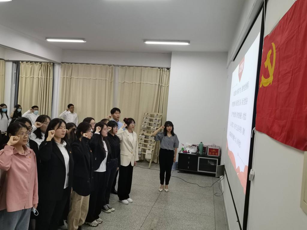 仪式在庄严的《国际歌》旋律中开始,党总支副书记姚爱华宣读这学期新发展党员名单,员工党支部组织委员魏语婷带领新发展党员右手握拳,举过肩头,面向鲜红的党旗,庄严宣誓。预备党员代表、B中文181班裴雨露同志进行表态发言,她表示将在今后的学习和工作中勇做先锋,为建设社会主义现代化强国贡献自己的力量。