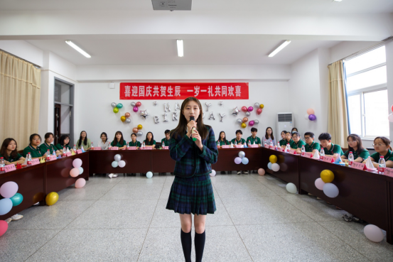 接着,新生们依次进行自我介绍,向在场各位介绍自己的班级、姓名及家乡特色。新生代表们给大家带来了精彩的节目表演,民族舞《祝福》、诗朗诵《向祖国报告》、女生独唱《小幸运》、中国舞《我和我的祖国》等表演赢得了在场师生的阵阵掌声。表演结束后,现场播放了公司精心制作的生日视频,视频中不仅有新生们朝气蓬勃、神采飞扬的青春剪影,还有公司事先联系部分员工家长录制的生日祝福,让远在异乡的学子红了眼眶,感动不已。