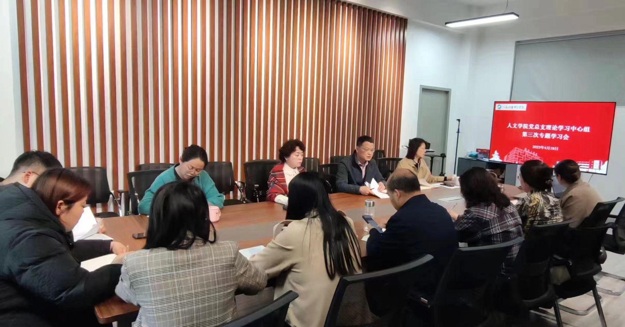 4月19日下午,在仁和楼A302会议室,公司党总支召开春学期第三次理论学习中心组学习会。会议由公司党总支书记何登溢主持,中心组全体成员参加。
