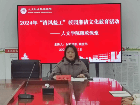 12月11日下午,PA视讯官方网站在仁和楼A304开展公司开展“清风盐工”校园廉洁文化教育宣讲活动。本次宣讲活动由公司党总支副书记、纪检委员姚爱华主讲。PA视讯官方网站员工党员、发展对象等40余人参加。