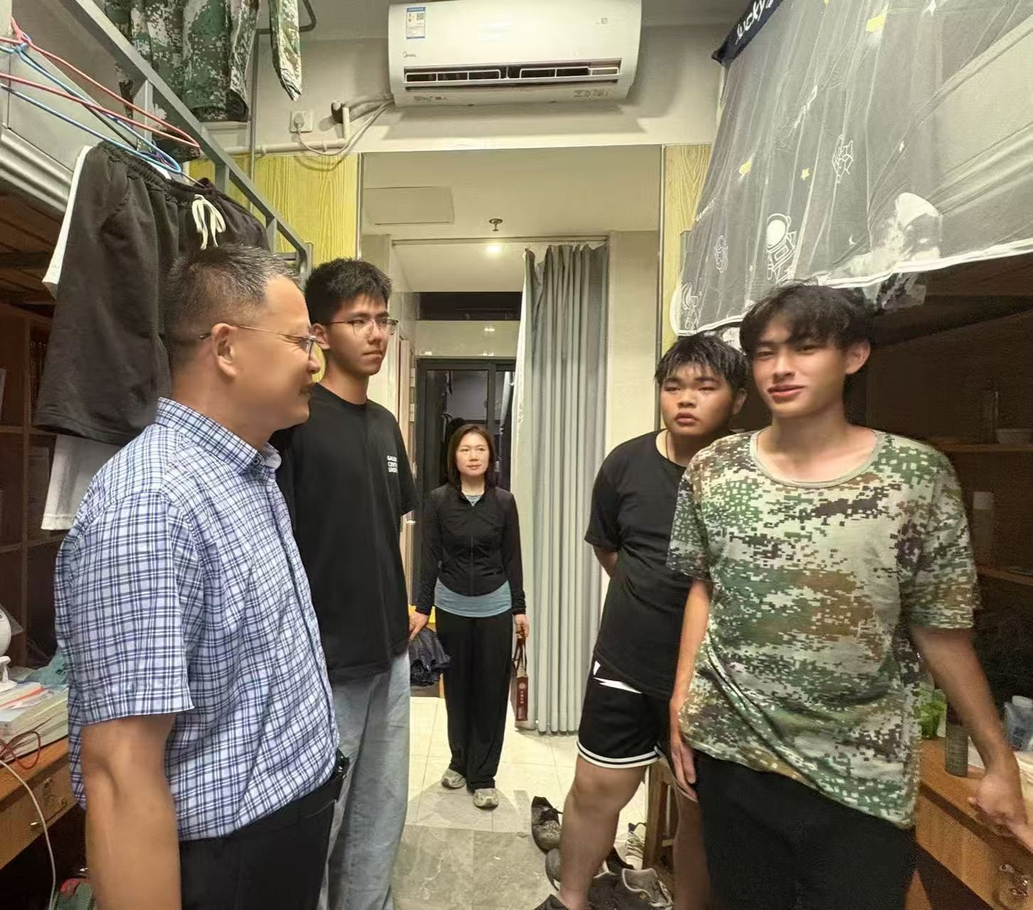 为深入了解2025级新生入学适应情况,传递公司人文关怀,9月16日晚,公司党总支书记何登溢、副书记姚爱华带领公司专职辅导员共同走访新生宿舍。