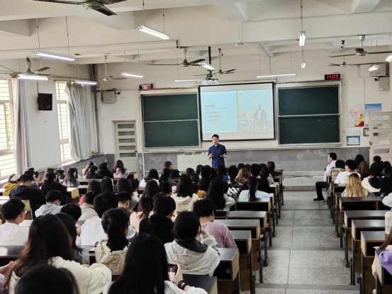 2021年4月28日下午,在北校区体知楼S101,溧阳万豪酒店人事总监程昊先生应邀走进人文讲坛,为PA视讯官方网站师生作专题报告。公司党总支副书记何登溢主持报告会,新生辅导员刘高、大一大二员工共200余人参加会议。