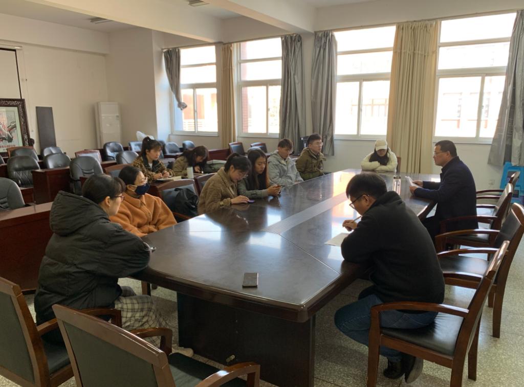 何登溢书记认真分析了今年研究生考试的详细情况,并与过线员工一一交流,听取他们的个人情况。他以个人考博求学的经历及前两届员工考研复试调剂的相关员工为例,积极动员员工参与复试调剂工作,并从考研复试技巧、调剂院校的选择、如何寻求专业教师的帮助等几个问题认真回答考生的疑惑。毕业班辅导员刘迪老师就复试场地进行了统筹安排。