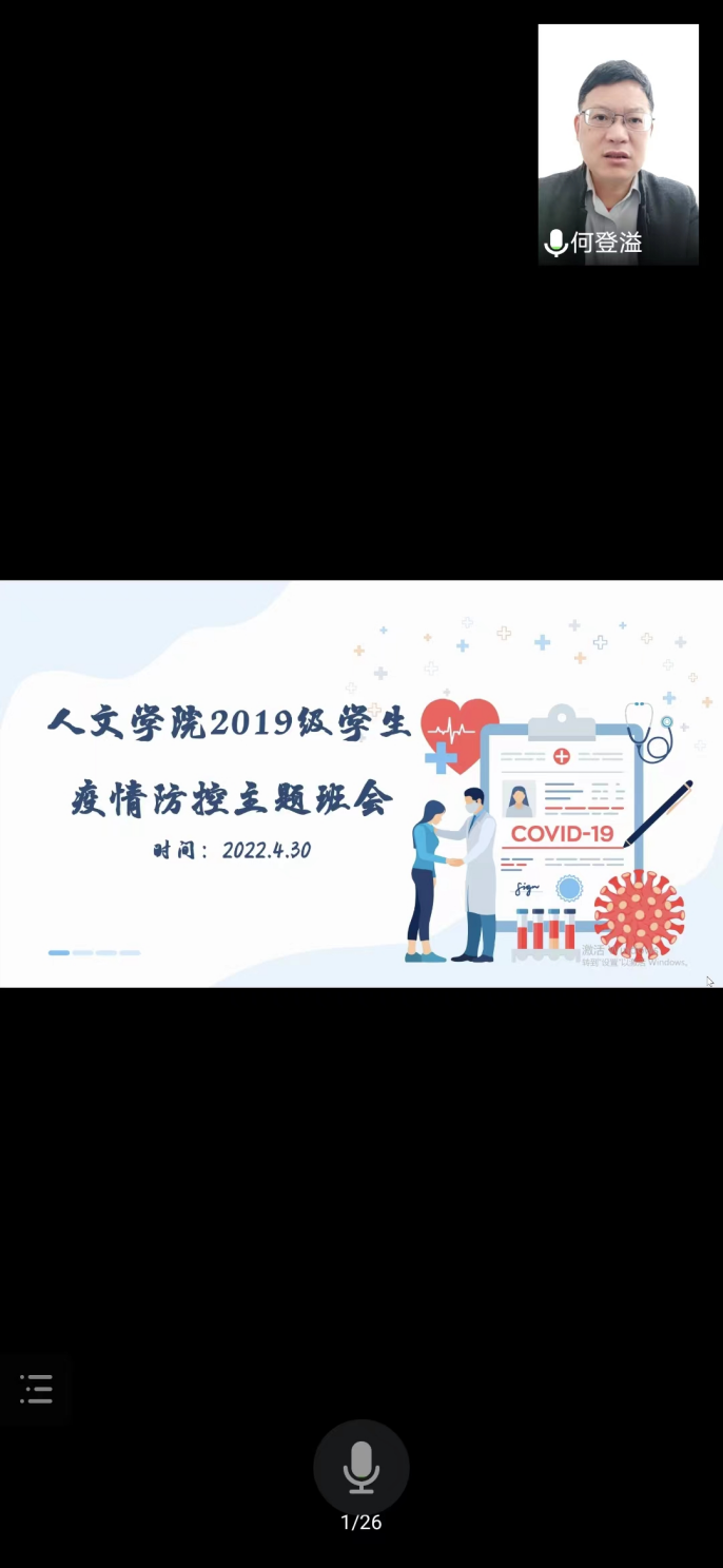 为做好“五一假期”员工安全稳定工作,进一步筑牢安全底线,PA视讯官方网站全体专兼职辅导员在4月29日—30日召开责任班级疫情防控主题班会。