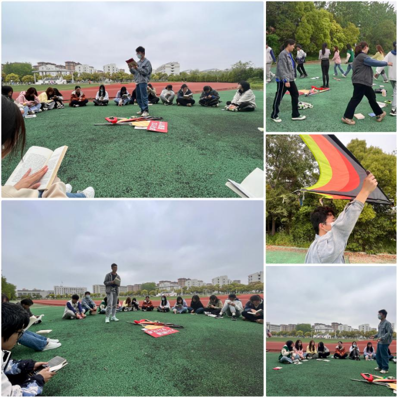 开场环节以“飞花传令”巧妙展开,同学们以“春”“水”“月”“山”等诗词中的高频字为题,纷纷调动“诗词库存”,积极抢答,从大漠孤烟吟到杏花春雨,从少年志气吟到金戈铁马,诸如“平沙落日大荒西,陇上明星高复低”“杨花榆荚无才思,惟解漫天作雪飞”“心随朗月高,志与秋霜洁”的优美诗句不时从大家口中汩汩流出……既考验了同学们的随机应变能力和心理素质,更体现出了深厚的文化底蕴与人文素养。活动进入“共享悦读”环节,同学们以不同视角介绍推荐书目,诵读原著经典片段,互相分享读书感悟并且进行深入而热烈的交流互动,B酒店221杨皓宇同学向大家分享了著名作家梁衡先生的散文集《把栏杆拍遍》阅读感悟,短短数语间深入浅出,道明了历史风云、民族仇恨、正邪搏击。活动结尾进行“心向未来,绽放风采”心理素质拓展环节,在统一组织下同学们进行了“抱团喊数”“你演我猜”“共放风筝”等趣味小游戏,现场春风和煦,热情高涨,同学们在跑跳间肆意挥洒汗水,在游戏中慢慢敞开心扉,交流互动,放飞心灵,深刻感受到了互助互爱以及团队合作的重要意义,增进了彼此的信任和理解。