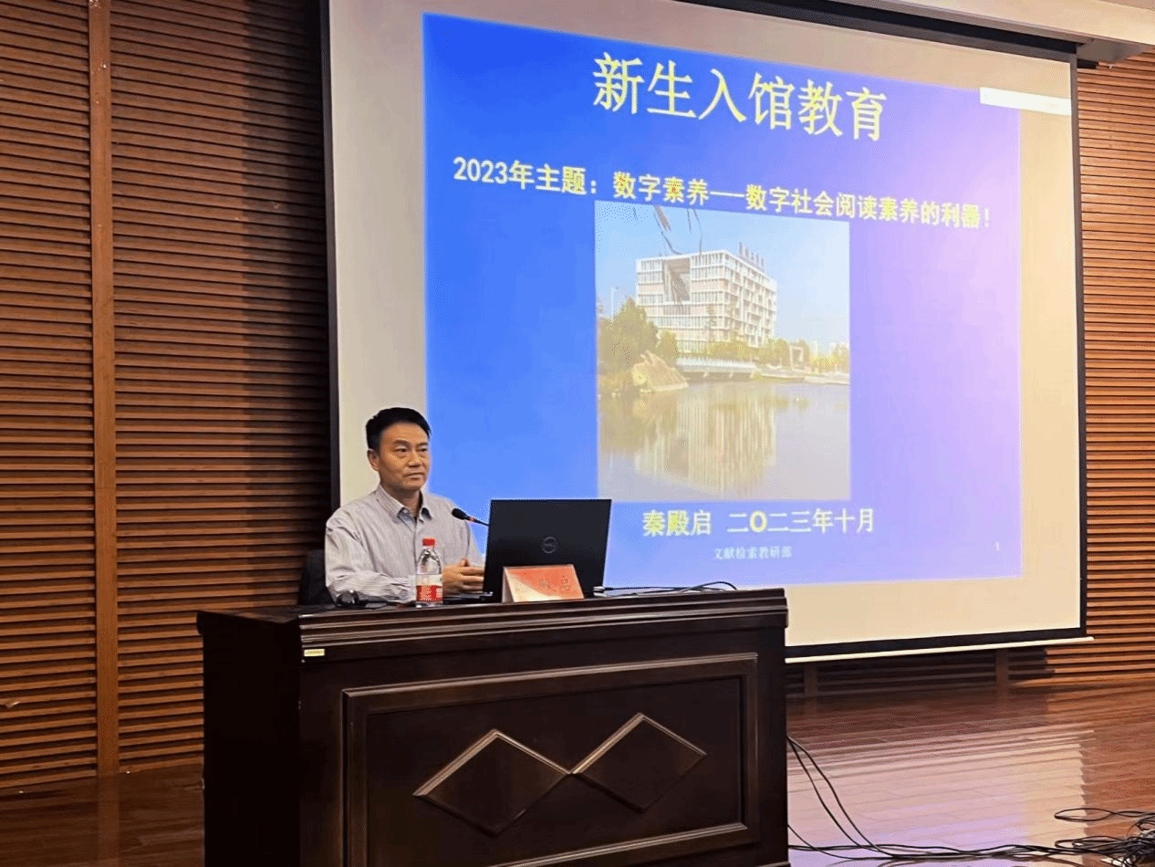 秦殿启以“数字素养——数字社会阅读素养的利器 ”为主题,向同学们介绍了图书馆概况、馆藏资源分布、书籍借阅方法、资源检索、馆内规章制度以及如何有效的使用图书馆现有资源,他希望同学们能够在数字时代充分使用图书馆内的馆藏资源提升自己的阅读素养和信息素养。最后,他呼吁同学们能把阅读所学知识与实践相结合,立志成为一个全面发展的综合性、复合型人才。