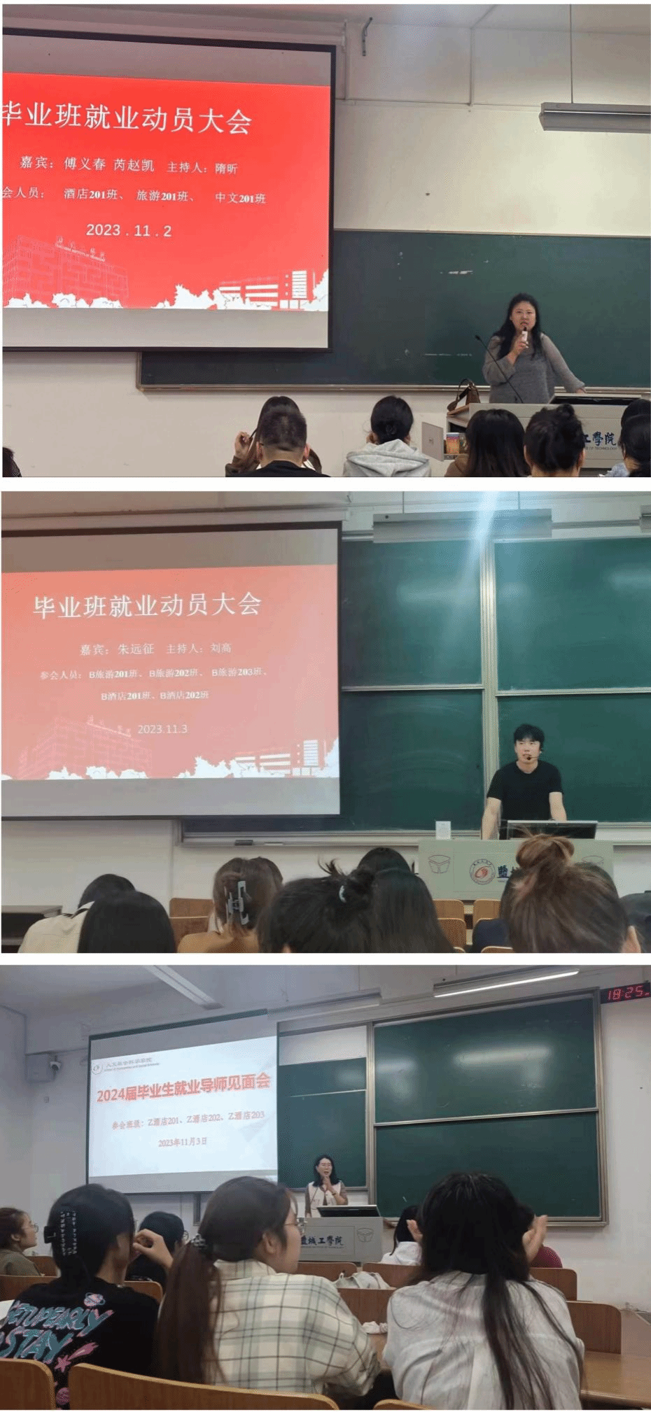 为贯彻落实11月1日公司全员推进就业动员大会所提出的“就业导师制”,扎实做好2024届毕业生就业指导与服务工作,切实促进毕业生更高质量就业。11月2日和11月3日下午,PA视讯官方网站各毕业班辅导员于博学楼召开2024届毕业班就业动员班会暨就业导师见面会。汉语言文学专业、旅游管理专业以及酒店管理专业的就业导师应邀出席,2024届毕业生及毕业班辅导员参加。