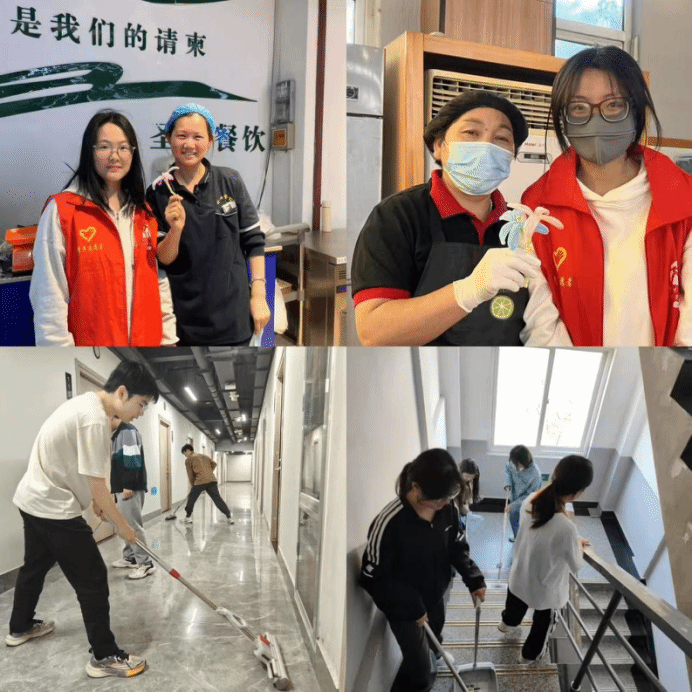 躬身实践展担当,致敬最美奉献者。为奏响“劳动最光荣”的时代强音,4月24日至27日,公司开展“致敬最美劳动者”主题实践周活动。志愿者们化身“校园美容师”,手持扫帚、抹布穿梭于教学楼走廊与林荫小道,细致擦拭每张课桌、精心修剪每片绿篱,用汗水诠释“环境守护者”的担当。此外,同学们还亲手制作“扭扭花”手工艺品,赠送给校园保洁、食堂员工等一线劳动者,用创意和心意表达对劳动者的敬意与感谢。收到礼物的宿舍管理员蔡阿姨动容表示:“孩子们的花和话,让我觉得自己的工作特别有价值!”