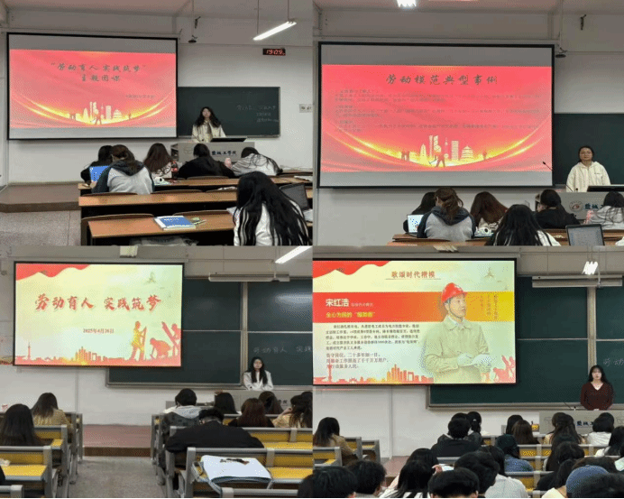 劳模领航铸魂,精神薪火相传。为引导青年学子在劳模事迹中汲取精神力量,公司以团支部为单位开展劳动教育主题团课,组织员工集中学习全国劳动模范的先进事迹,观看《大国工匠》《劳动铸就中国梦》等专题片,深入探讨劳动精神的时代内涵。B旅游242团支书李祥乐在分享感悟时表示:“从‘铁人’王进喜到‘当代愚公’黄大发,劳模们用行动诠释了什么是真正的奋斗精神。作为新时代青年,我们要把这种精神转化为整理宿舍内务的自觉,转化为参与校园服务的热情,让劳动成为青春最亮丽的底色。”
