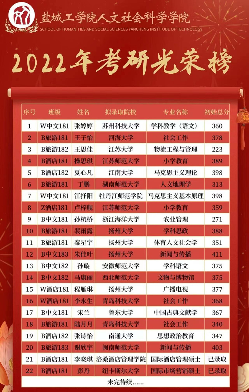 2022年员工考研光荣榜