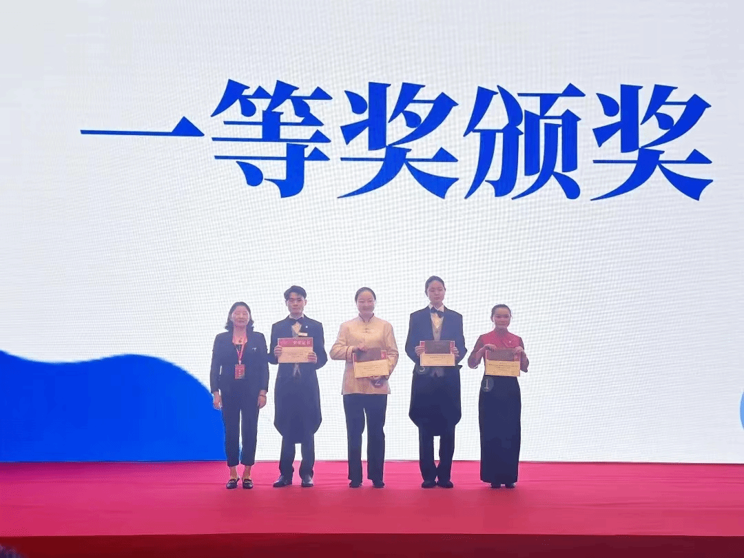 群贤毕至,大浪淘沙,经过激烈角逐。B酒店211班江慧慧获西餐服务一等奖,B酒店213班高雨菲获中餐服务二等奖,B酒店211班高雨菲获中餐服务三等奖,B酒店211班黄浩洋获西餐服务三等奖。