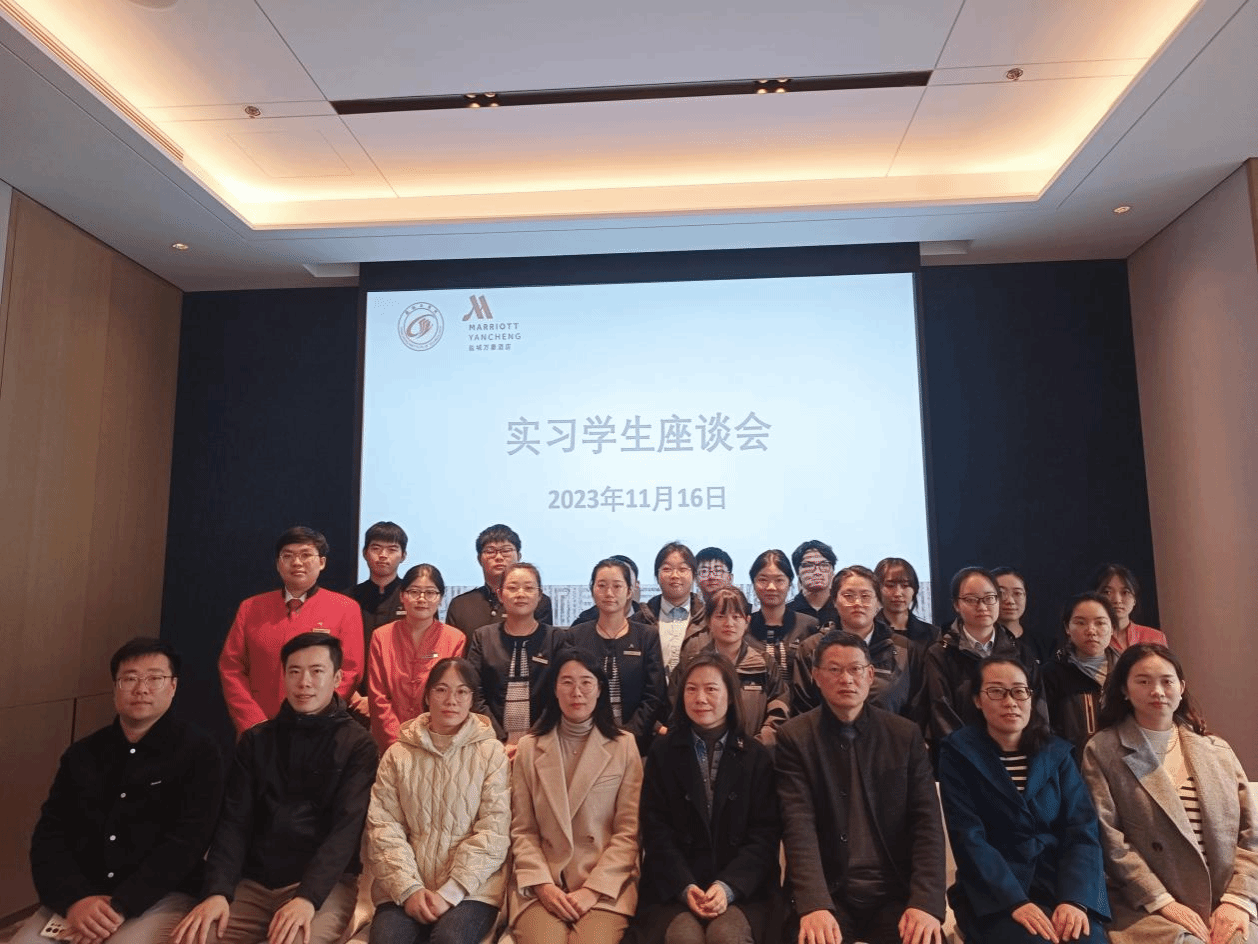 为深化校企合作,了解员工实习情况,加强员工实习管理,助力人才培养高质量发展,11月16日,公司党总支书记何登溢、副书记姚爱华带领旅游系部分教师赴盐城万豪酒店看望在此实习的员工并参加座谈交流会。