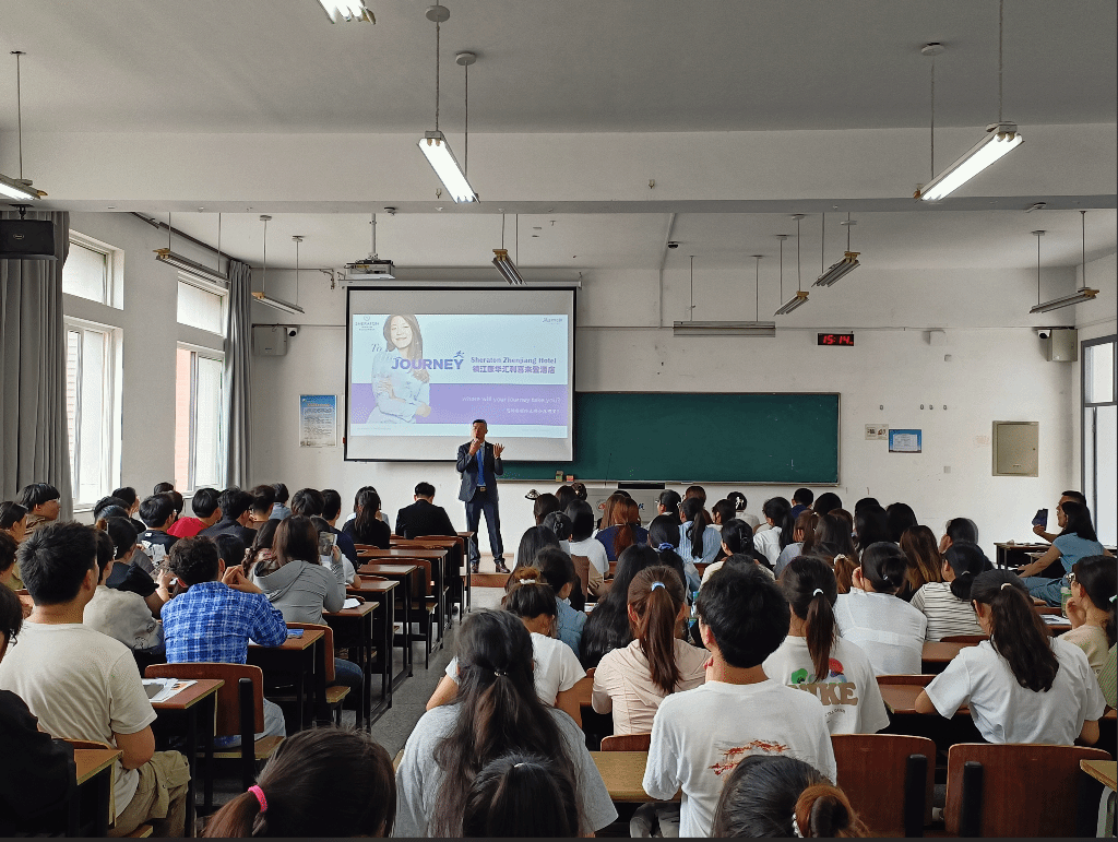 会议于下午14:30准时开始,首先由各参会酒店进行简短而精炼的宣讲,每家酒店有3至4分钟时间介绍自身特色与招聘需求。随后,酒店管理专业主任祝仁革老师向在场员工介绍了实习的基本要求与期望,强调了实习在专业教育中的重要性。