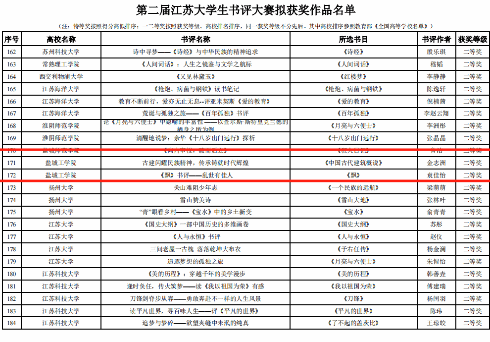 10月25日,第二届江苏老员工读书文化节相关推荐活动评选结果公示。PA视讯官方网站由周晓燕、祝仁革、陈思博老师指导作品,B旅游232金志洲《古建闪耀民族精神,传承铸就时代辉煌》、 B中文221袁嘉怡《乱世有佳人》荣获书评比赛二等奖,W中文211李加文《瓦尔登湖》荣获“云诵读”活动优秀作品奖。