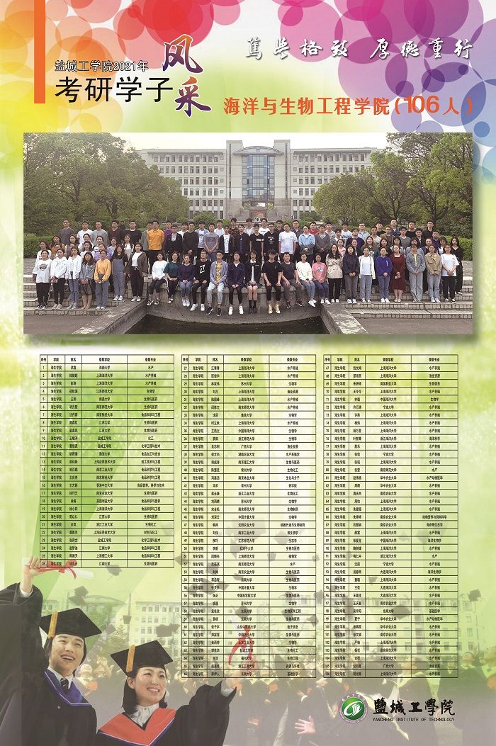 其中,海洋与生物工程公司21名党员毕业生全部考研成功,B制药172班、B电建172班、B材料1701班、B材料1702班、B轻化171班、B环境171班、B海洋171班、B海洋172班等8个班级考研录取率超过50%,优培秦景辉同学数学考到满分150。各公司加强学风建设,有效发挥科研团队、竞赛团队、导师团队等各类实践团队优势,加强考研全过程指导,公司全员育人成效显著。