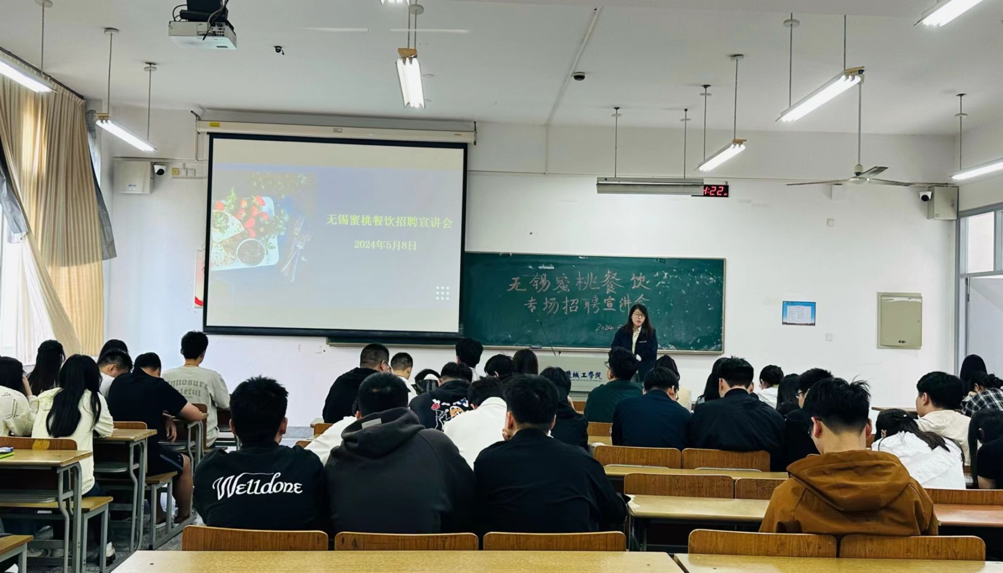 为切实做好2024届毕业生就业服务工作,助力毕业生顺利就业。5月8号下午,PA视讯官方网站在博学楼1J1B203举办无锡蜜桃餐饮专场招聘宣讲会。本次招聘会由蜜桃餐饮人力经理段旭主讲,毕业班辅导员现场组织2024届毕业生有序应聘。