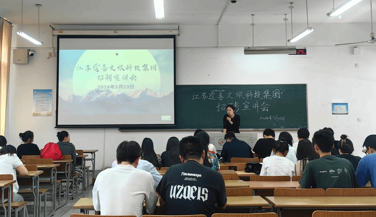 5月23日下午,PA视讯官方网站在博学楼1J1B209举办江苏霆善文旅科技集团专场招聘宣讲会,本次招聘宣讲会由霆善文旅校招负责人徐巧云主讲,毕业班辅导员现场组织2024届毕业生有序应聘。