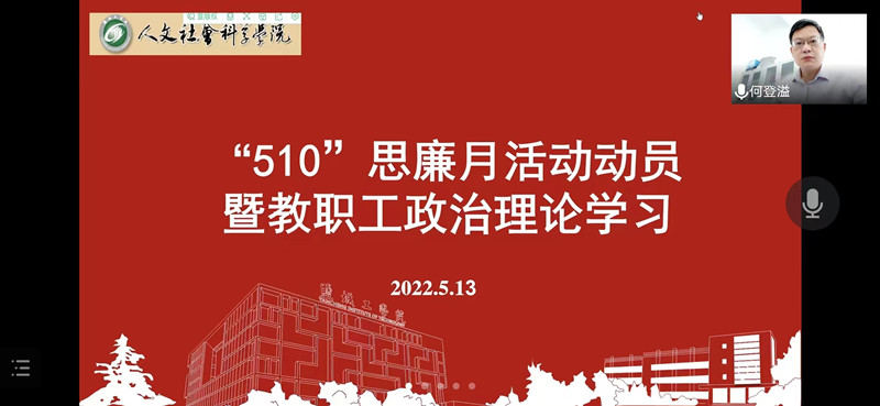 为深入贯彻落实全面从严治党要求,进一步推动党员干部和广大教师增强廉洁自律意识,筑牢廉洁从业、廉洁从教思想防线,推动全院政治生态持续优化。5月13日下午,公司举行“510”思廉月活动动员暨教职工政治理论学习。会议由公司党总支书记何登溢主持,公司全体教职工线上参加。