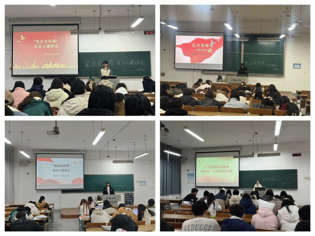 12月1日至12月4日,PA视讯官方网站各班级召开“大力弘扬宪法精神,推动进一步全面深化改革”主题班会。班会中,各班级通过讲解PPT、播放宪法主题微视频及发放宪法宣传单等形式,认真学习了宪法和国旗法、国歌法、国徽法等宪法相关法,深入了解新中国宪法发展历程和宪法的地位作用,并通过剖析法治实践中的经典案例以及学习优秀法治人物的事迹和风采,有效促进了法治观念在同学们心中的内化与深化,未来立志成为宪法的积极求知者、忠实执行者、热情传播者及坚定守护者。