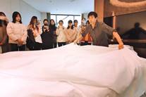 盐城万豪总经理蔡陈杰向员工们介绍了盐城万豪的总体概况,并以公司员工“大师哥”的身份鼓励员工学好专业知识,“心怀梦想,脚踏实地”。人力资源总监刘玲讲述了个人的奋斗经历,勉励员工们要放平心态、积极好学,充分发挥个人的能动性,厚积薄发。运营总监沈磊分析了当前服务业发展形势,指出服务管理的重要性,强调员工要及时做好人生职业规划。