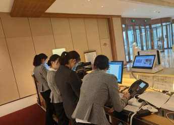 即将负责前台接待的同学正在参观与学习